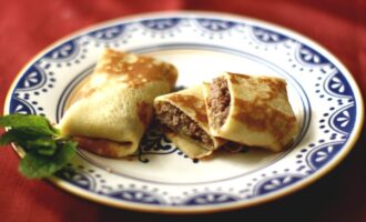 1. Тщательно перемешать яйца, желтки с солью и мукой. 2. Влить 300мл молока и оставить тесто на 30 минут. 3. Добавить в тесто растопленное сливочное масло и, если...