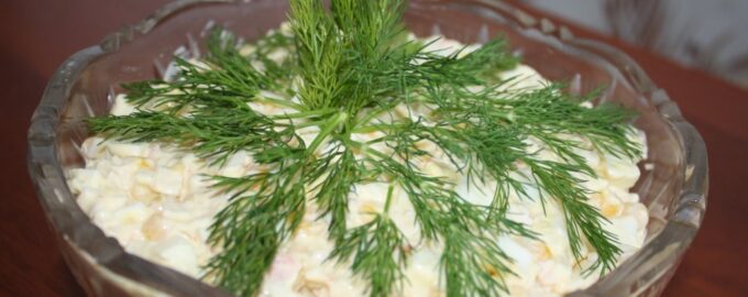 Было время когда на праздничном столе салат Оливье был постоянным посетителем, однако время меняется и сегодя один из самых популярных салатов на праздничном столе — крабовый салат! А всё потому, что это очень вкусный салат, быстро готовится из доступных и недорогих ингредиентов.